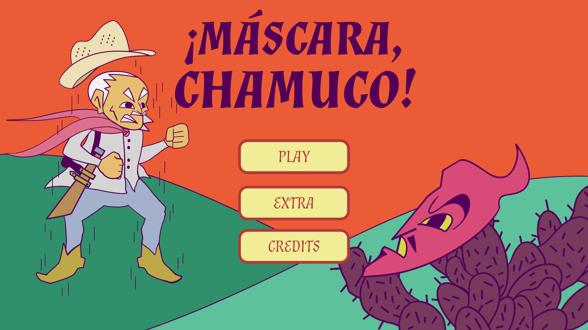 ¡MÁSCARA, CHAMUCO! is a PC game about an old man on his way home. Suddenly, El Chamuco (a popular term for the "Devil" in Mexico) attacks him <, but this aged man decides to fight back and ultimately wins. El Chamuco flees leaving behind a shell that resembles his face. To prevent chaos, the old man decides to destroy this strange object, but the wind carries it away towards the nopales plants. The player, as the old man must quickly find the location of the mask. It is a look and find game against the clock. We took inspiration from a common joke in Mexico, which says that someone´s grandfather fought the devil on a hill.